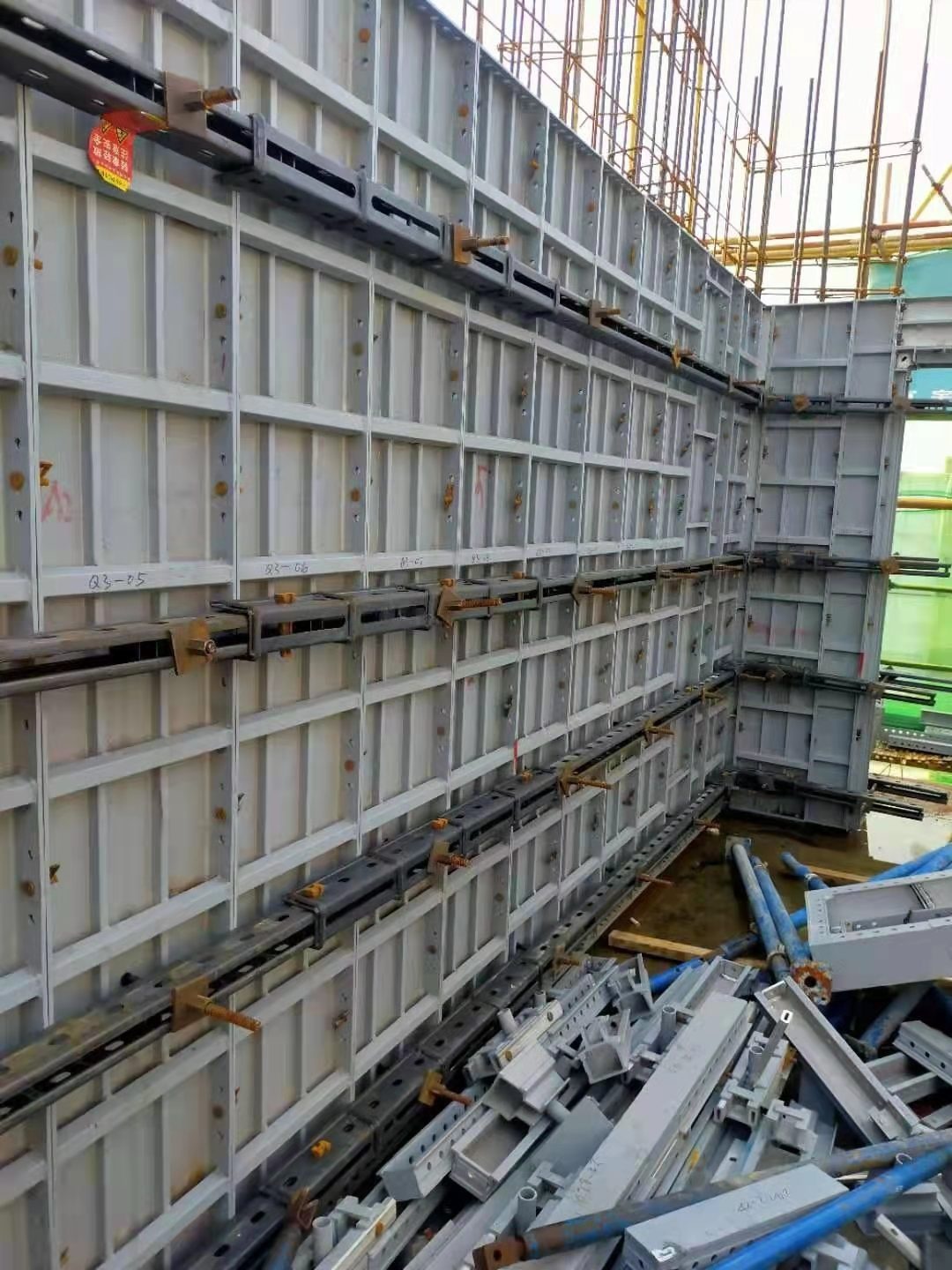 2.不可重復(fù)利用。相對(duì)木模的任意拼接(異性除外),鋁模是在工廠定制,出廠即定型,使用時(shí)直接根據(jù)圖紙,不同構(gòu)建、不同部位的尺寸使用不同模板,安上螺絲。理論上一套模板只能用在標(biāo)準(zhǔn)層(地下室這類(lèi)只能使用一次一般不會(huì)使用),如果不同樓棟標(biāo)準(zhǔn)層相同也能使用。