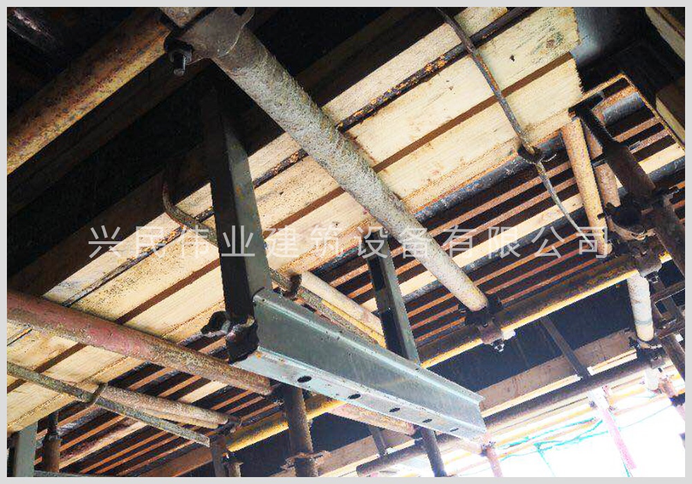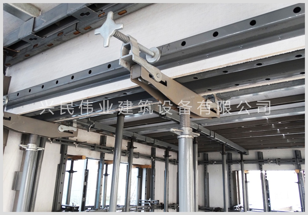 梁模板支護(hù)體系由豎梁、橫梁、穿墻釘、十字墊片、小螺母、組合而成。豎梁可以自由伸縮,